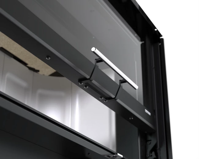 Sticlă panoramică cu geam serigrafiat negru, cu balamale robuste și închidere etanșă
