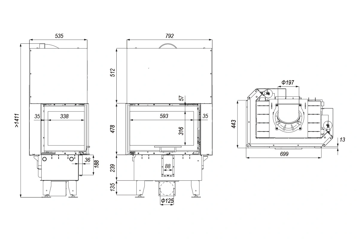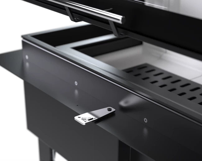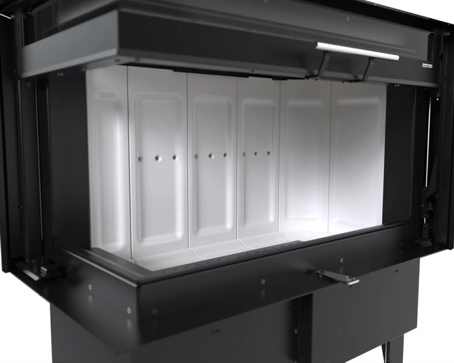 Datorită geamului lateral panoramic și a interiorului din șamotă refractară, oferă o vizibilitate superbă asupra flăcării și o acumulare excelentă a căldurii.